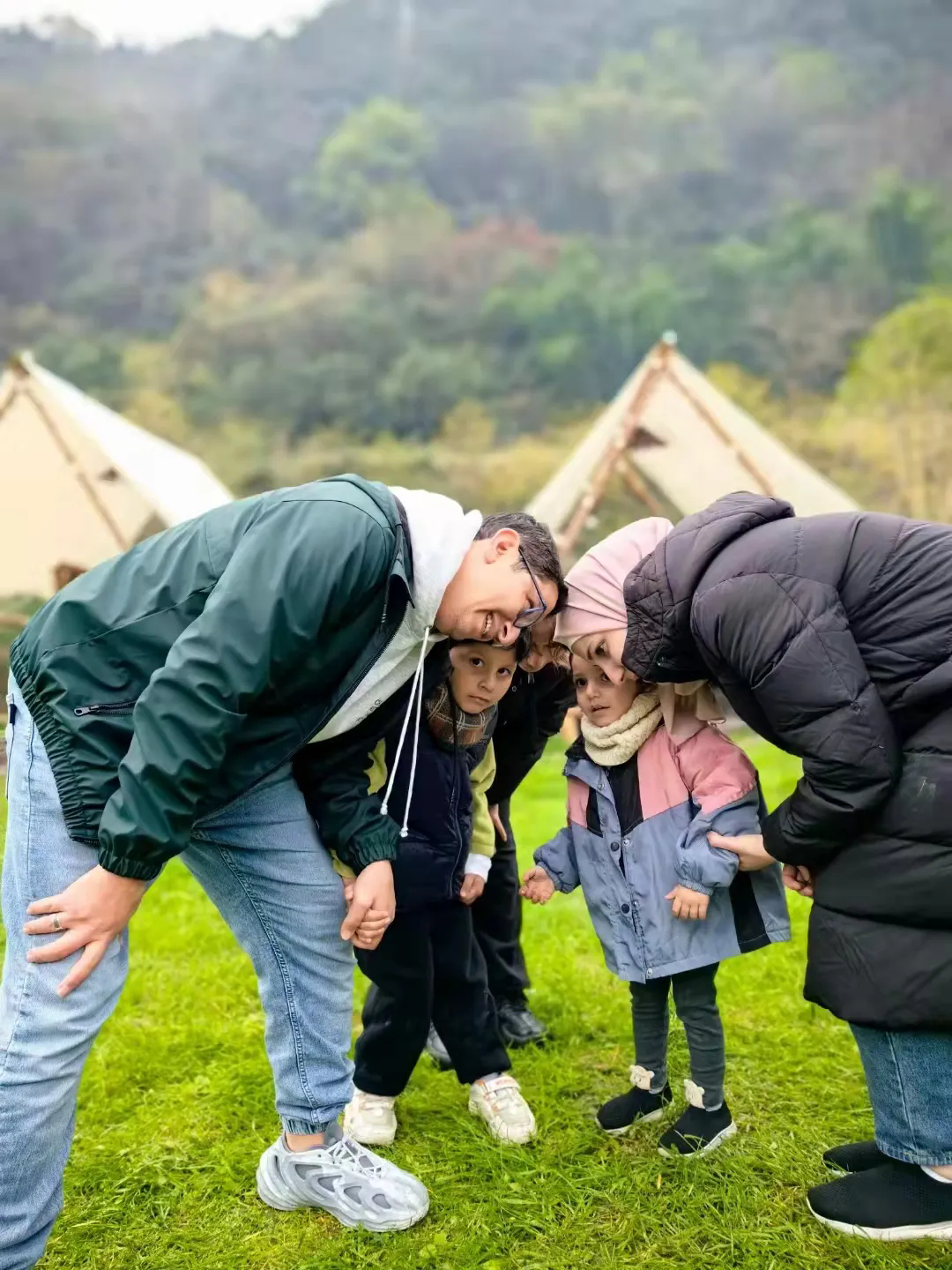 领队带领大家一起在山顶做游戏,和爸爸妈妈亲密互动!