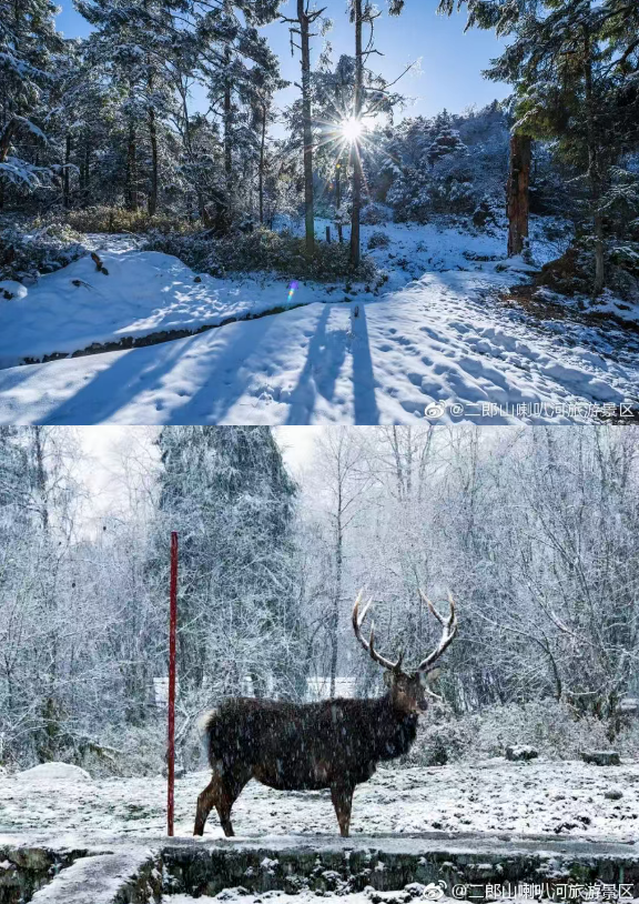 偶遇初雪、冰雪喇叭河、无高反、冰雪世界、邂逅水鹿、猴子