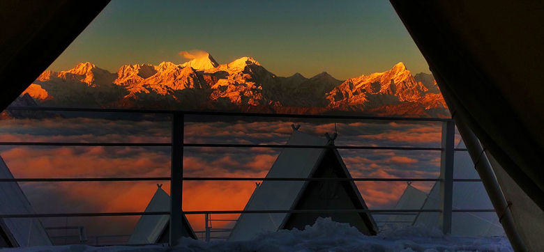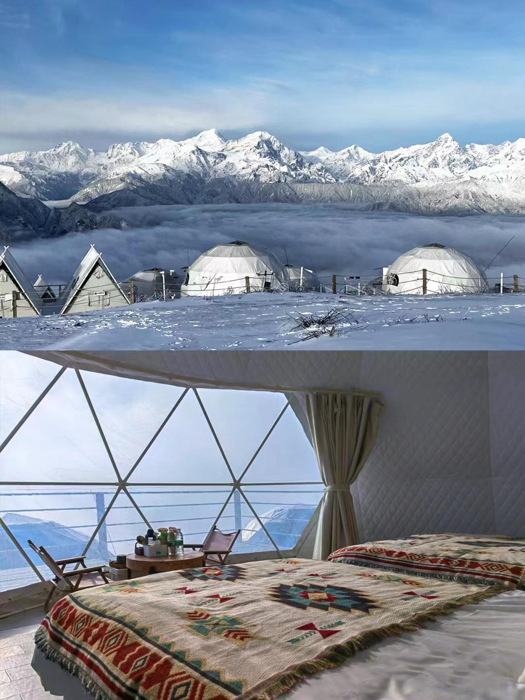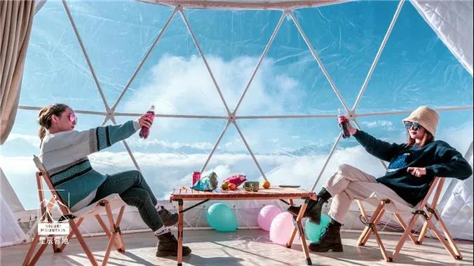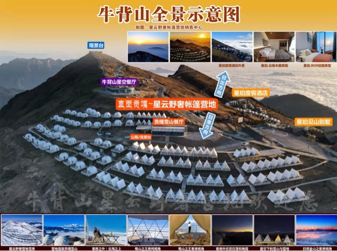 观光车直达山顶、云海云瀑、日出星空、入住景区内山顶轻奢营地、24小时供暖、海拔3666米、最美360°观景台