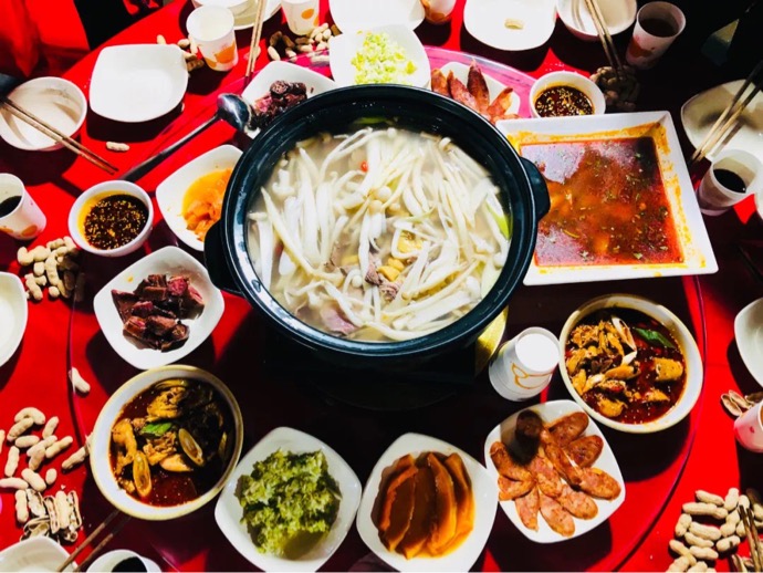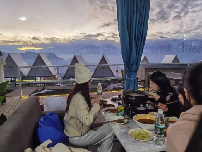 除了更好得住宿,开门可见雪山、星空外,现在的伙食也是一级棒,热气腾腾的牦牛肉汤锅 ,一定会让你忘了山上的寒冷之气。