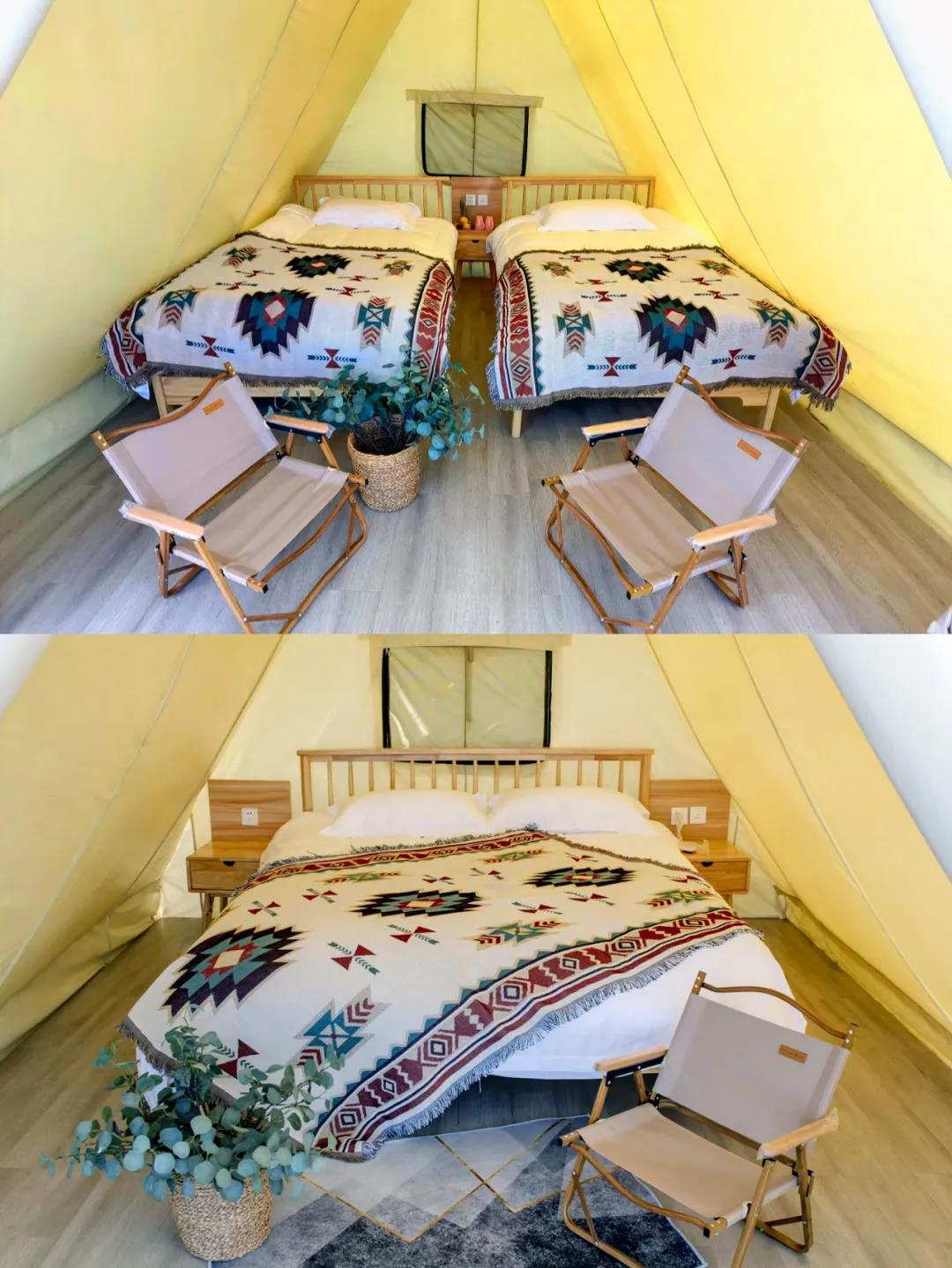1、山顶默认住宿为三角帐篷(标间/双床,1.2米宽,有暖气+电热毯),升级其他房型需咨询客服,具体房间大小类型,报名帖中有介绍。(升级大球大床/标间非周末300元/间、周末400元/间,以上价格不含国庆春节五一等法定假期,具体差价详询客服)