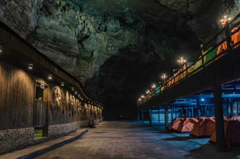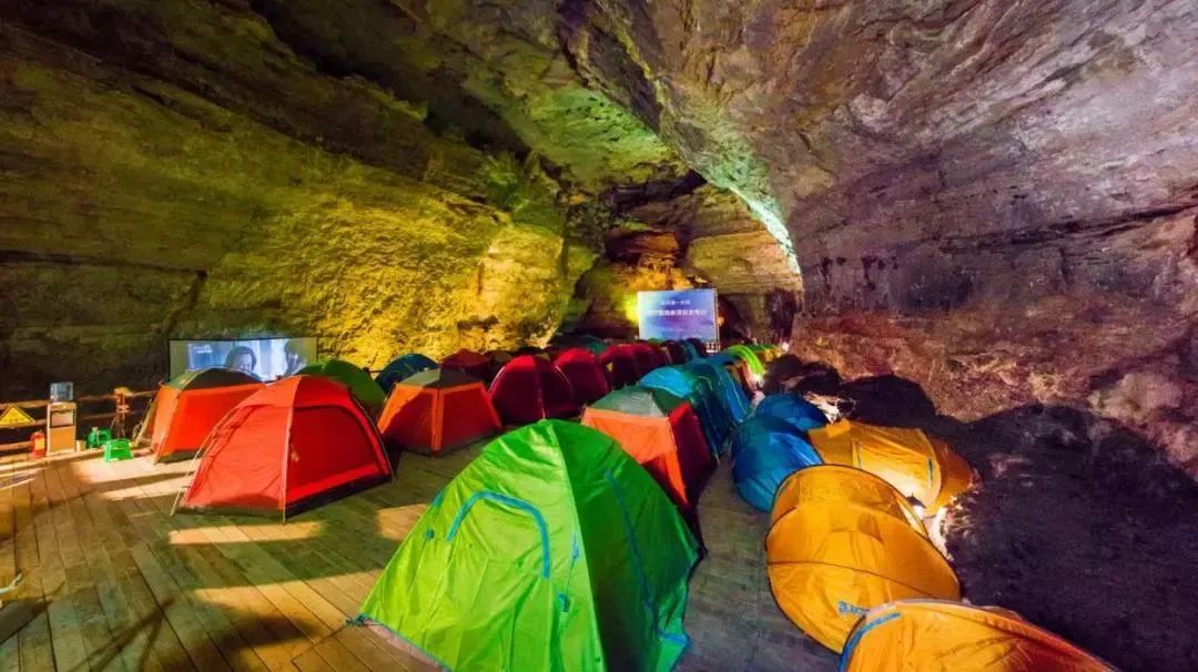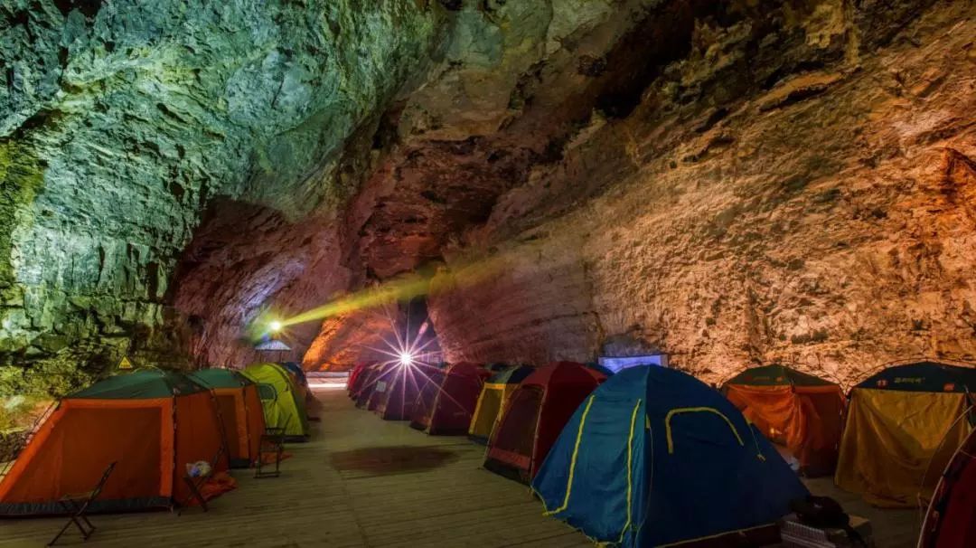 何教洞洞穴营地,采用传统的洞穴露营体验+酒店标准服务模式,为大家提供全新的游玩体验,里边配备有卫生间、淋浴房、咖啡厅等