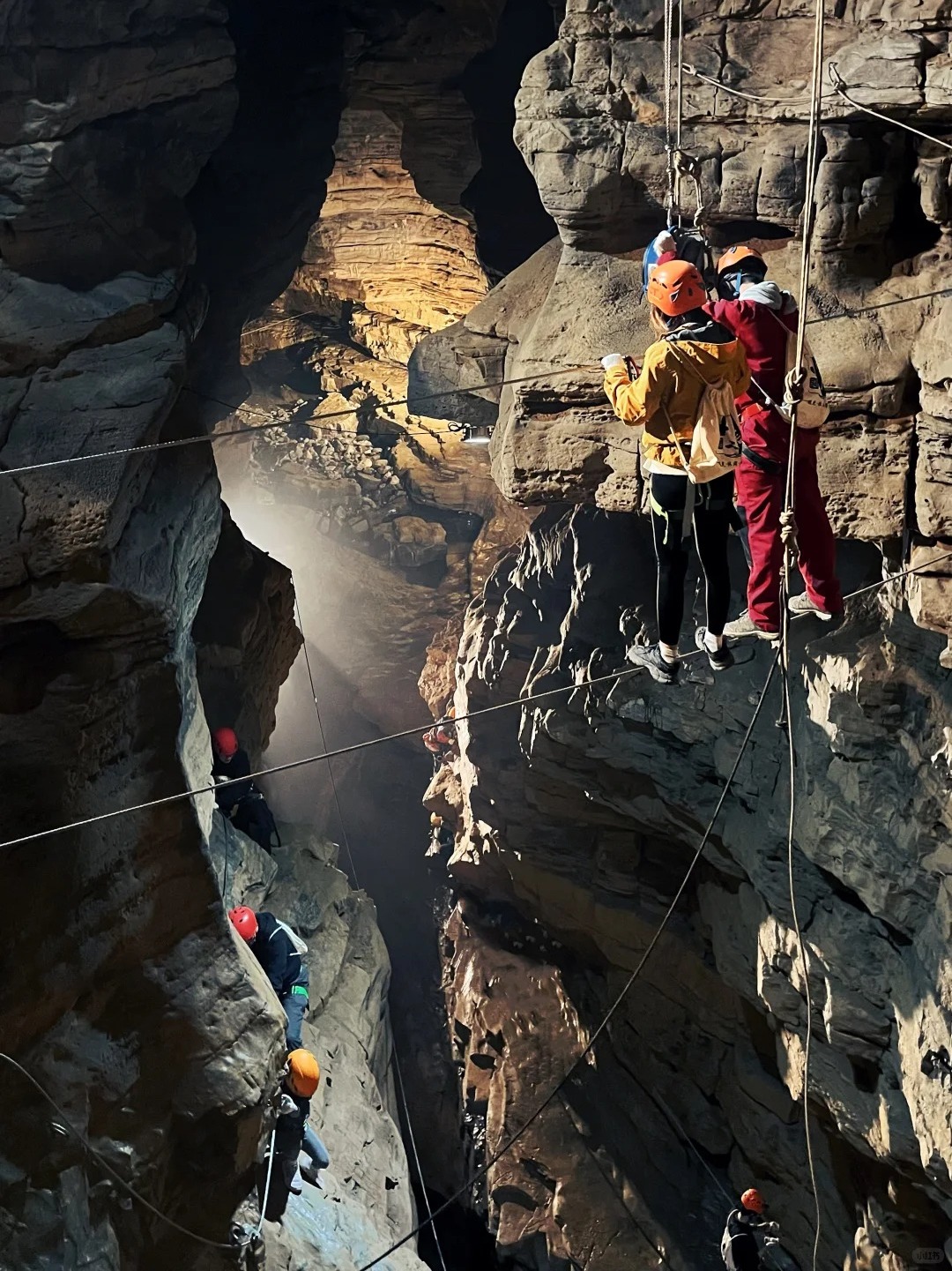 双河谷、清溪峡、地心探险、洞穴露营、体验式30m悬空竖井飞拉达、适合新手无难度、提供全套装备、玻璃索桥、傩城