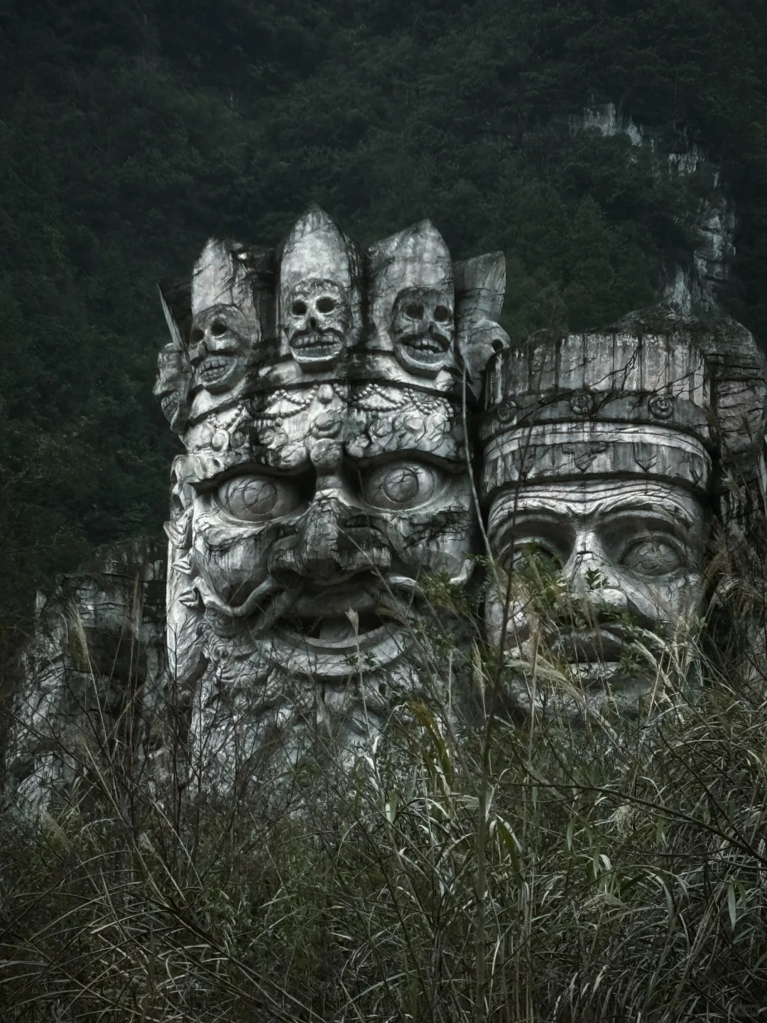 遗失在荒野里的中国傩城让人联想了神秘的复活岛人脸群像。