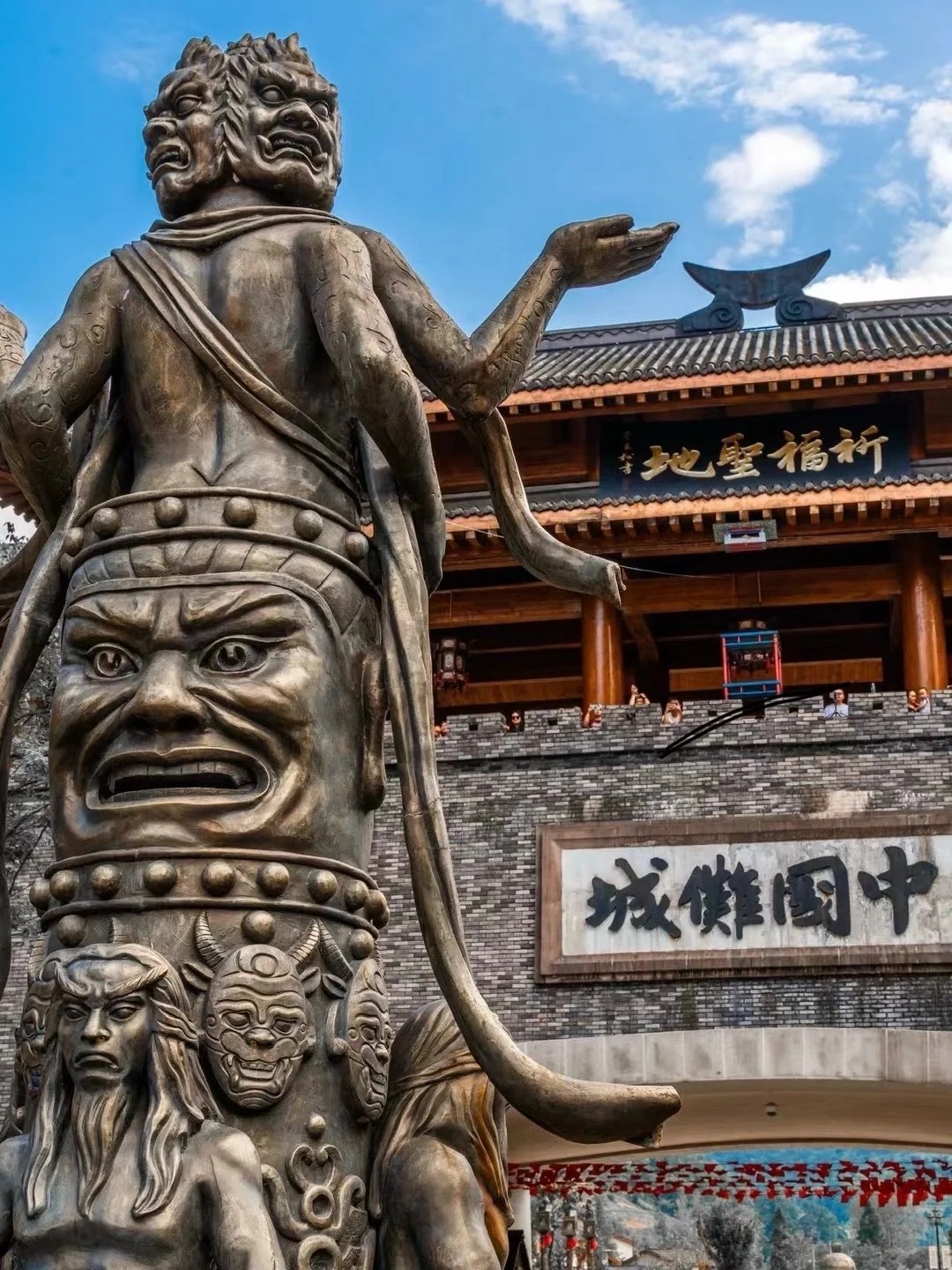 贵州傩城,这里是世界最大傩文化古城,有神秘傩戏、壮观图腾雕塑,被称为中国的“复活岛”。