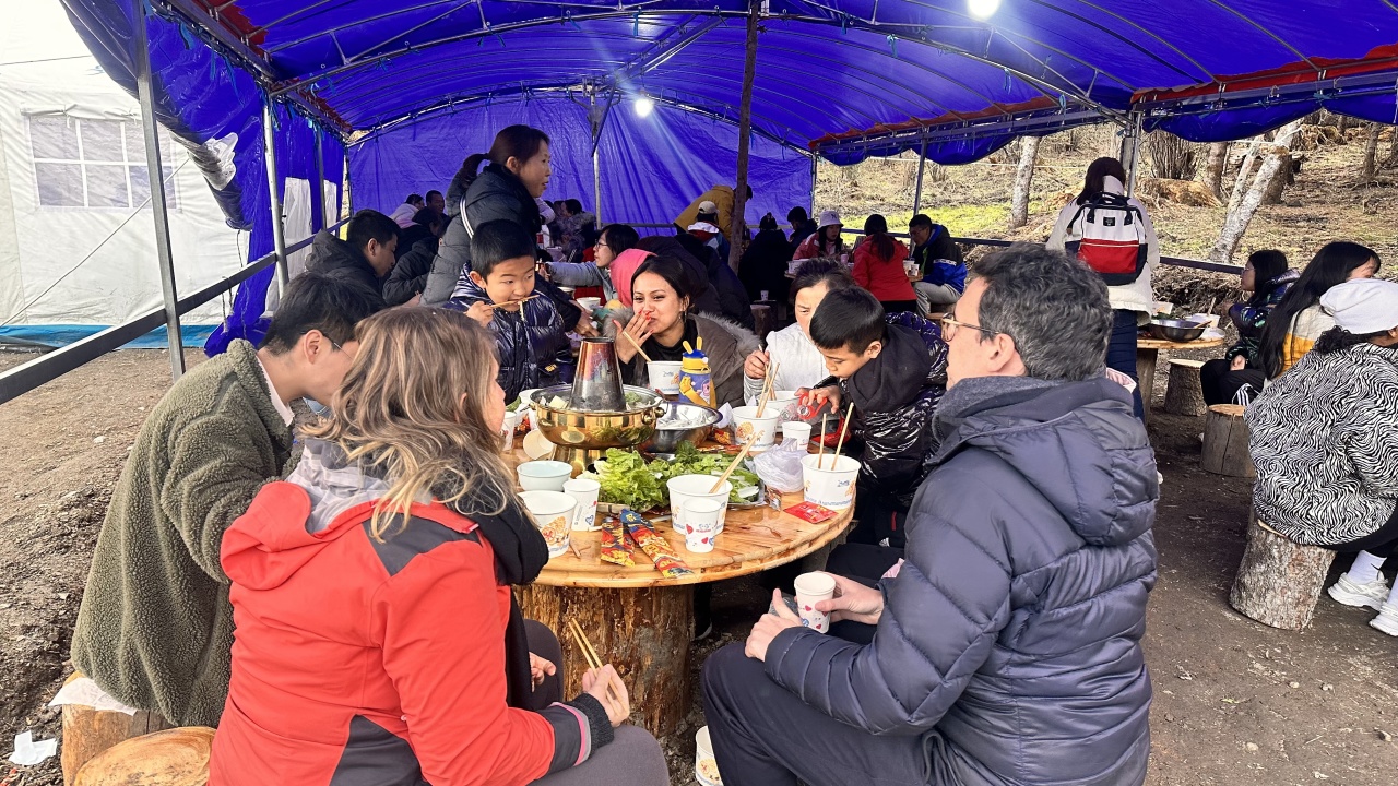 享用特色民族餐,酥油茶、糌粑、牛奶、本村土鸡蛋、酸菜腊肉面块、藏式土火锅,土火锅里面有正宗牦牛肉和本地现杀藏香猪瘦肉、外加各种野菜及本地蔬菜。