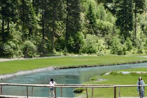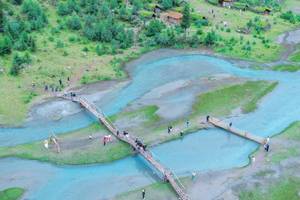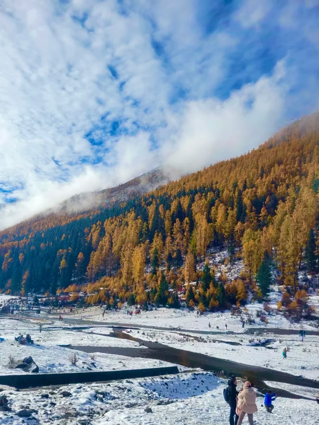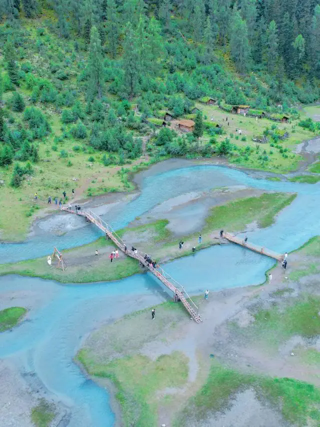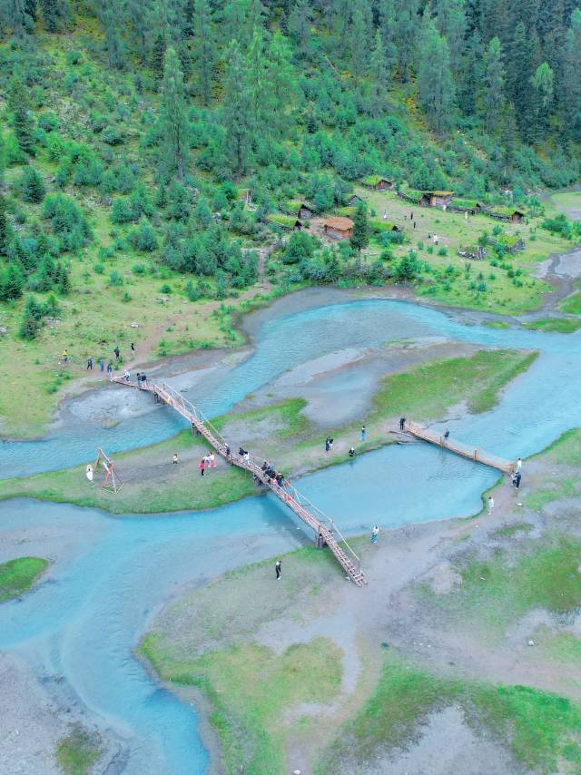 这是一片高原秘境河谷,雪山森林环抱,谷地平缓开阔,滩涂纵横交错,牛马在其中吃草放牧,一幅雪域田园牧歌画卷!不仅有海子和雪山,沿途还有各种的风景,如瀑布、溪流、森林、草甸、牧场等,这里是一个适合徒步、游玩,周边还有很多森林,七八月间也可以进入山林采摘野蘑菇。