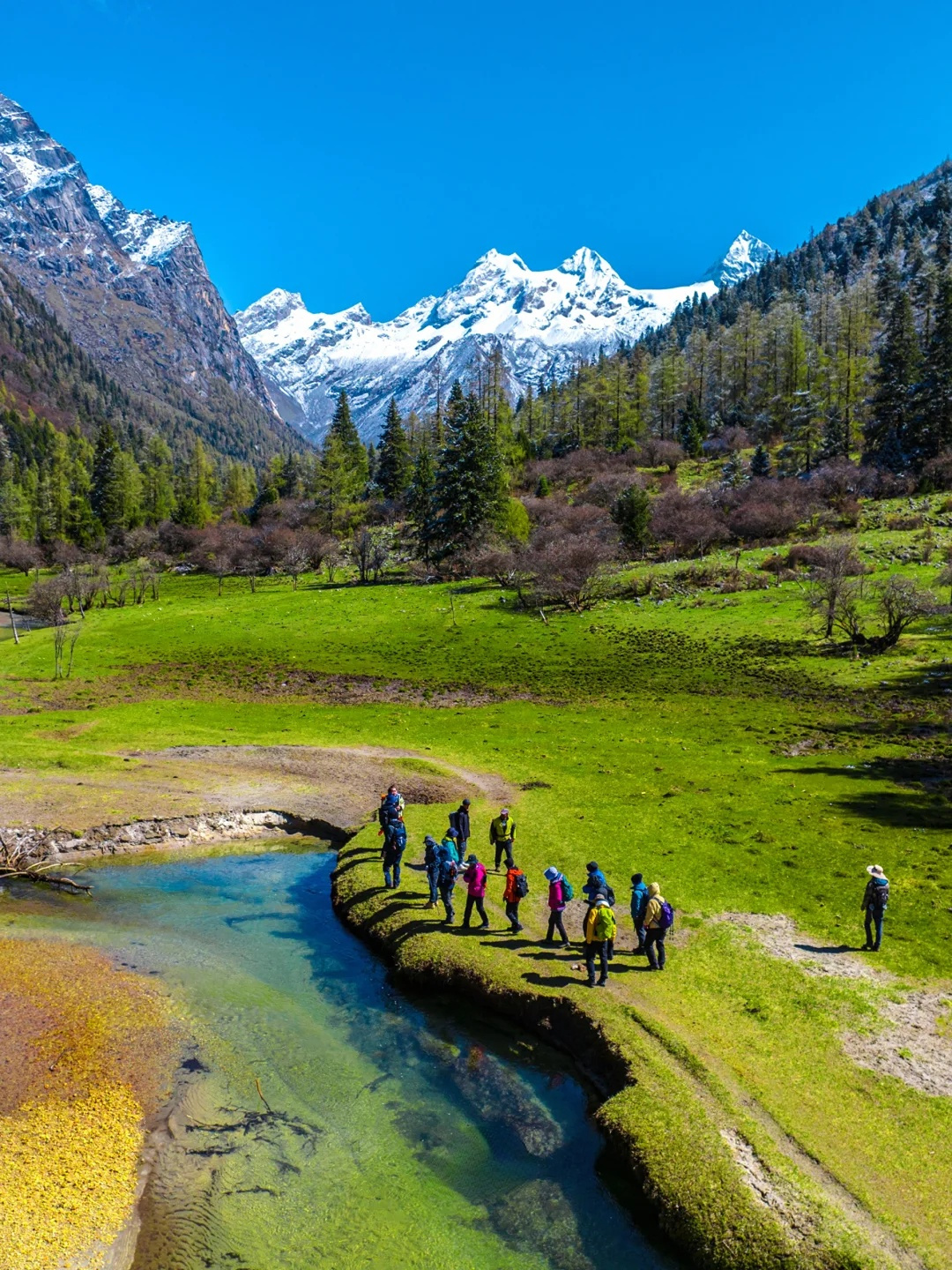 四周雪山环绕,植物种类丰富