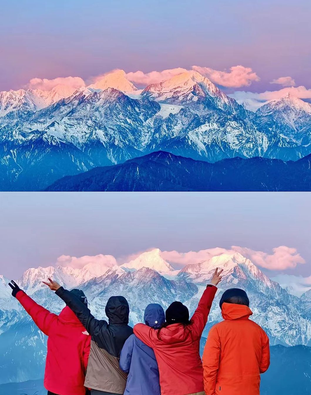 形成了壮观的日照金山景象