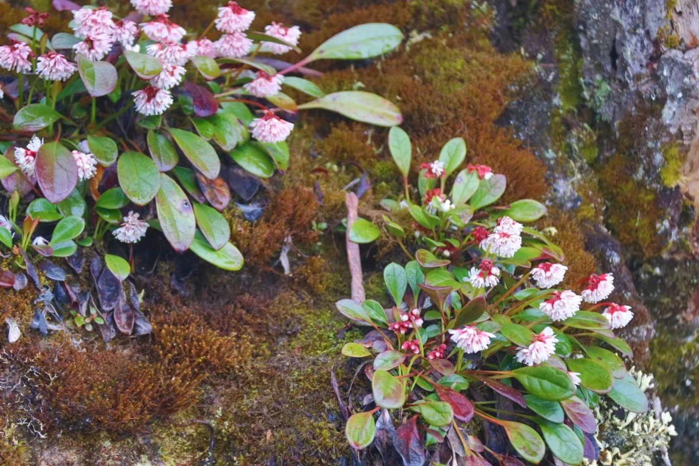 红的、粉的、白的花朵交织在一起