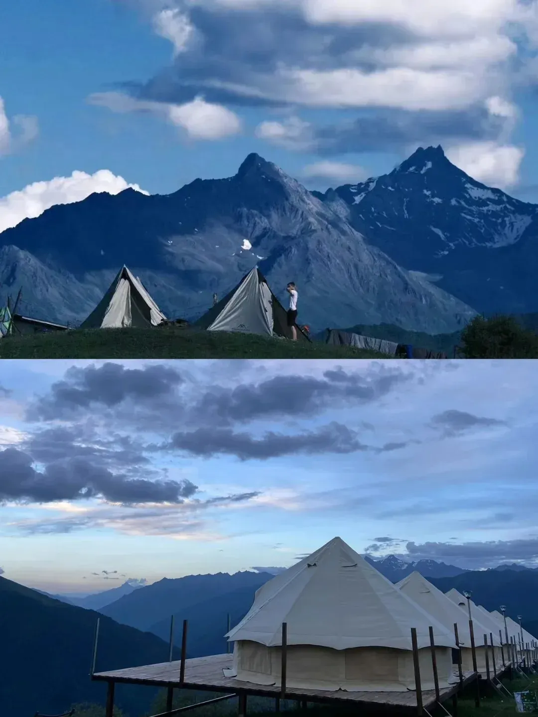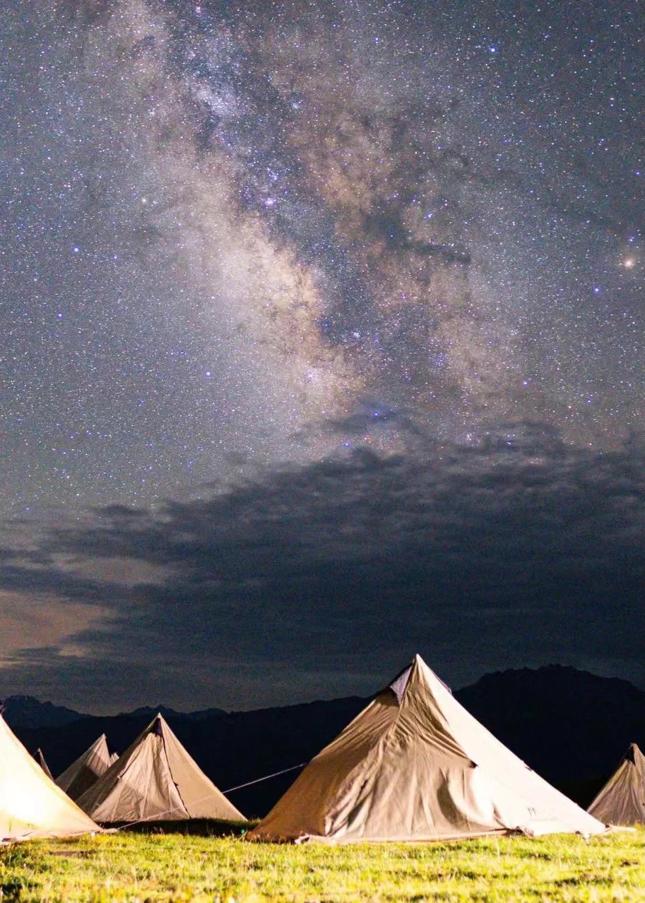 住宿:营地提供全套露营装备- 帐篷、睡袋、防潮垫和充气垫,2人一个帐篷(对睡袋卫生有要求建议自带抓绒睡袋);可升级轻奢印第安帐篷(提前确定);营地海拔约3700米,需注意高反,可提前喝红景天口服液!
