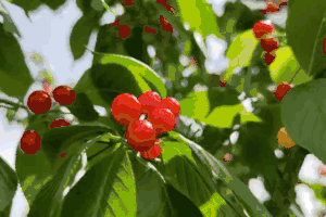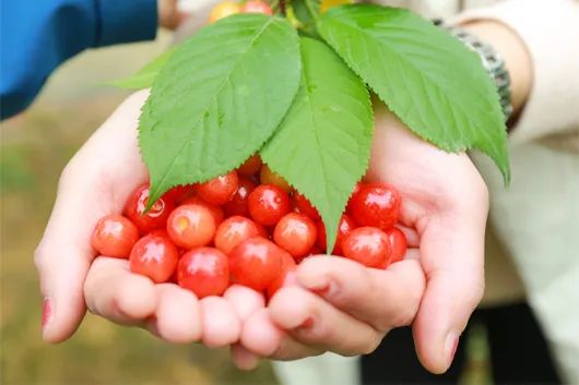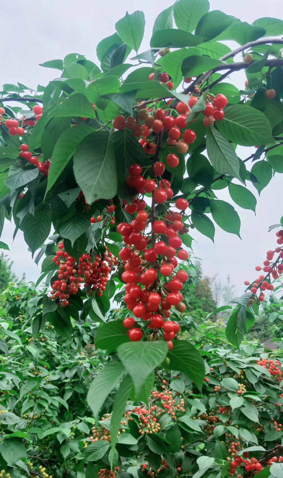 这里种的是本地老品种樱桃和部分改良甜樱桃,个头不大,却胜在风味浓郁。随手摘下一颗,不用洗(果园自然生长,放心),直接送进嘴里——