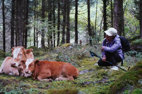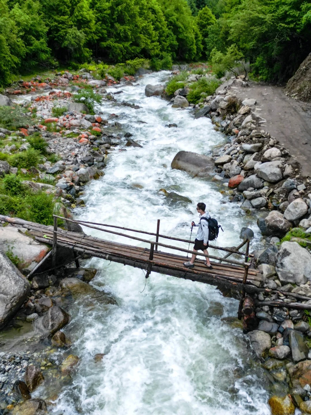 整个徒步路程有森林红石滩、瀑布溪流、步道和独木桥、高山草甸、牛羊成群,风景很美。