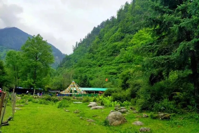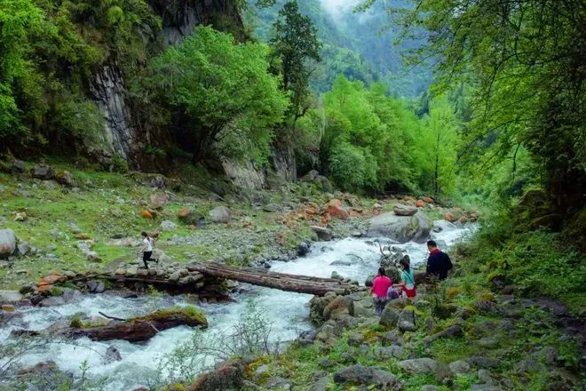 11:00-16:00 到达徒步起点,下车来张大合照,领队带领大家简单活动一下身体,整理好徒步装备开始徒步。到达营地享受铁板烧烤(自费48/人需提前预定,自愿消费),不用餐的徒步观甲尔瀑布(冬季冰瀑)、原始森林,此时处处风景如画,雪山连绵,树木繁多,野生动物汇聚,林海浩瀚,空气清新,风光宜人。享用完铁板烧烤后,时间充足的话,也可前往瀑布。领队带领大家合影留念,摆美美的姿势,拍大片 。这里夏天可避暑采野生菌,秋赏彩林,冬玩雪。游玩之后返回大巴车位置。