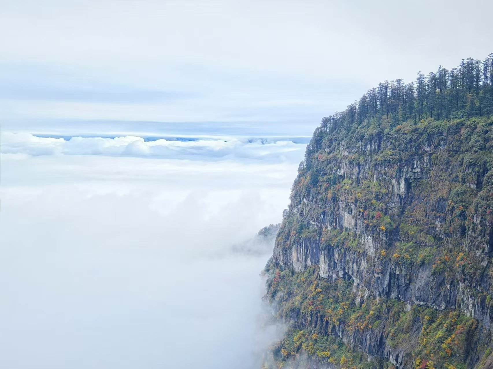 瓦屋山的秋季云海景观让人迷醉,当亲临山顶时,被眼前的景象震惊!满山全是乳白色的雾气,那么深,那么浓,汹涌着,翻滚着吞没了山间的一切