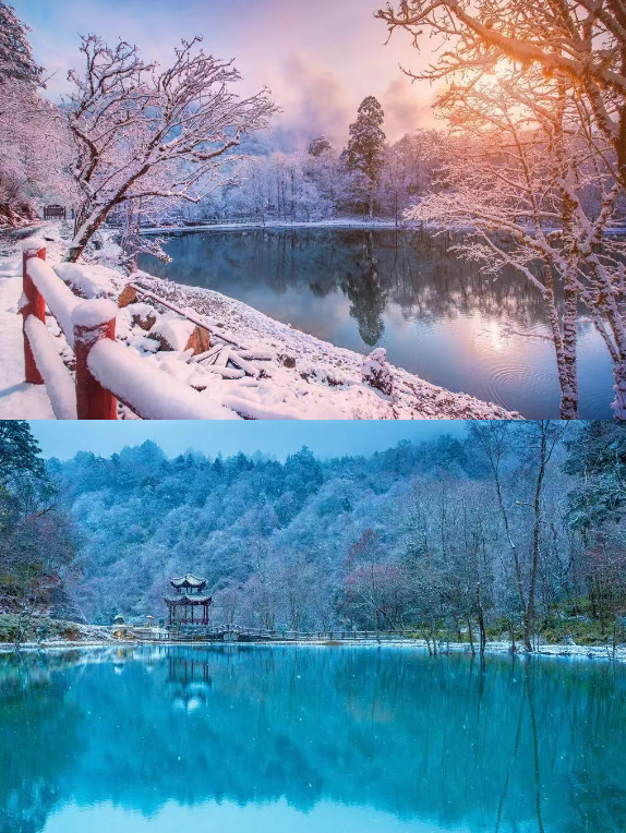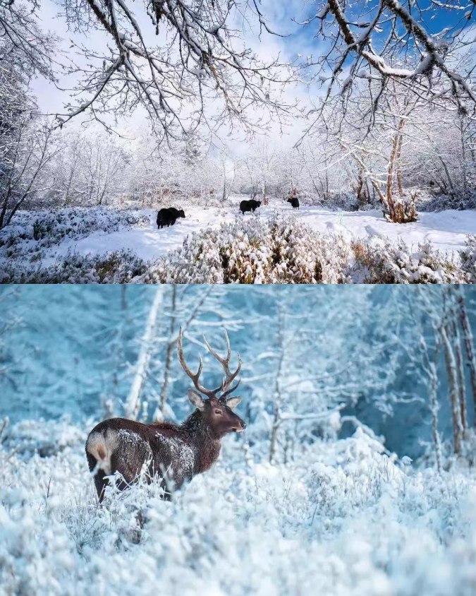 7点用完早餐后,出发前往焦山观景区,中途乘坐观光车,换乘缆车,上焦山云顶玩耍,运气好的话,会看到巨美的云海。沿着云上铁梯栈道徒步摄影。午后我们乘坐索道下山,直奔杜鹃湖拍雪景,然后打卡鹿池,寻找二郎山的网红水鹿,游玩后原路返回,下午3点上车开始返回成都。