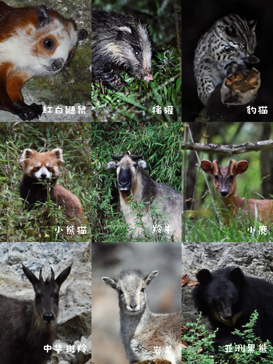 绿尾红雉、红腹角雉、小熊猫、水鹿、林麝、短尾猴、猕猴、鸳鸯等32种动物之多。