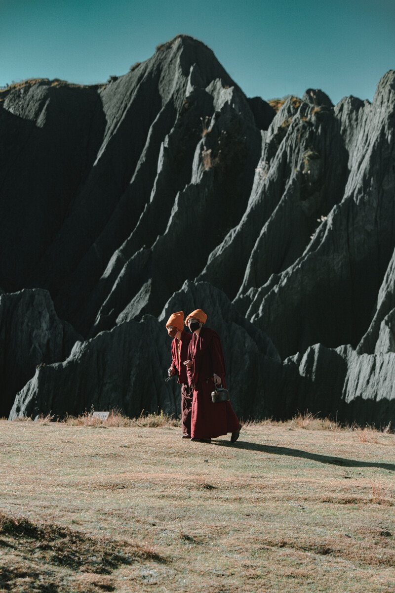 耸立的蓝色石林,笼罩在巨大天幕下,