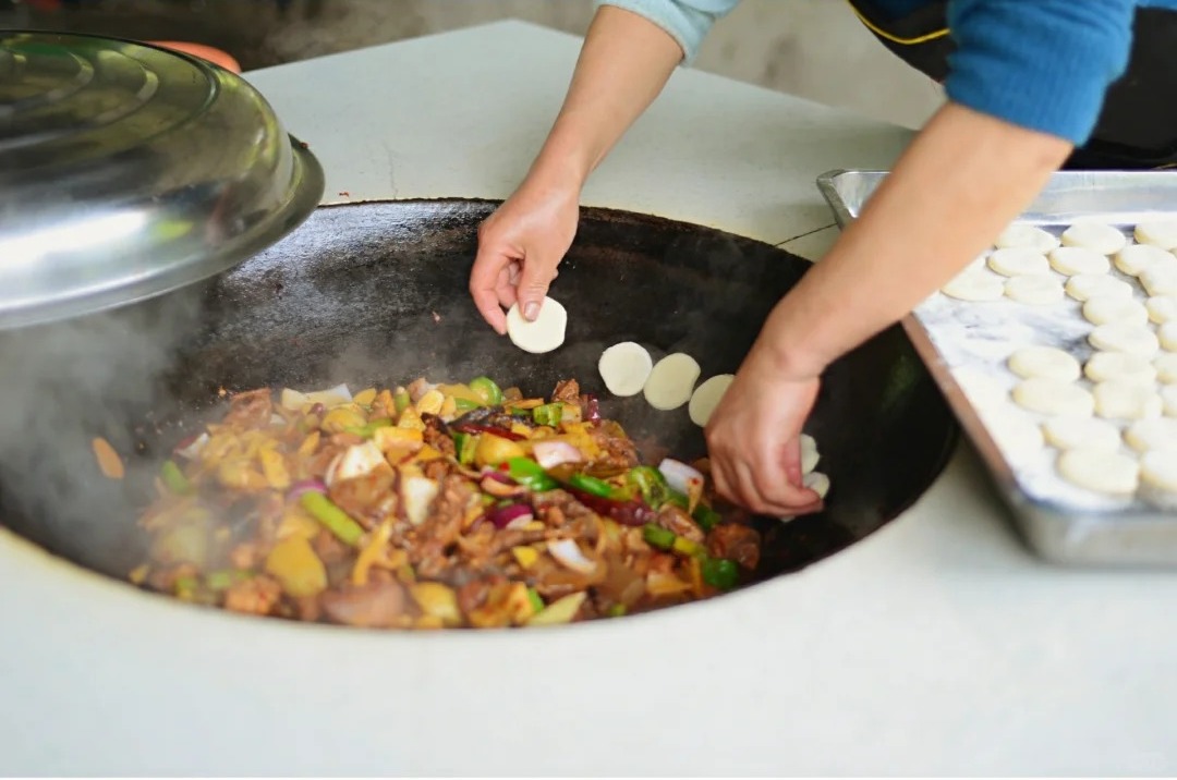 最重要的一道菜就是柴火烧鸡,锅边馍,主材选用当地跑山鸡,味美滋浓,十分地道,光是闻一闻就能感受到香气,迫不及待的让舌尖获得美味的享受。