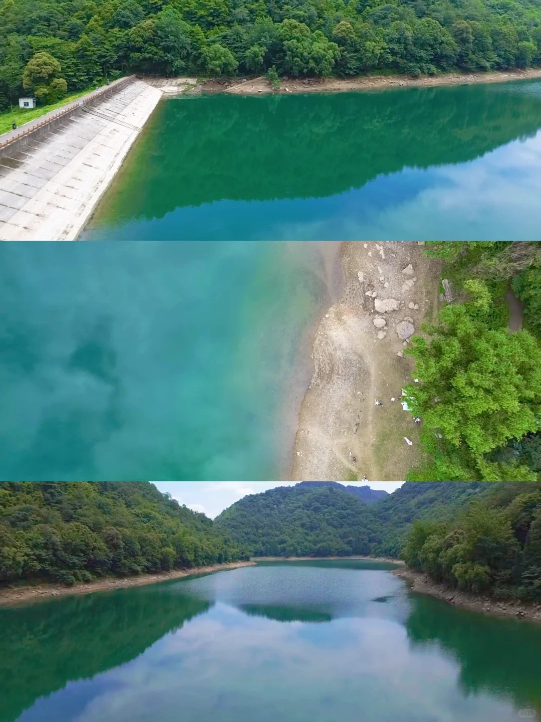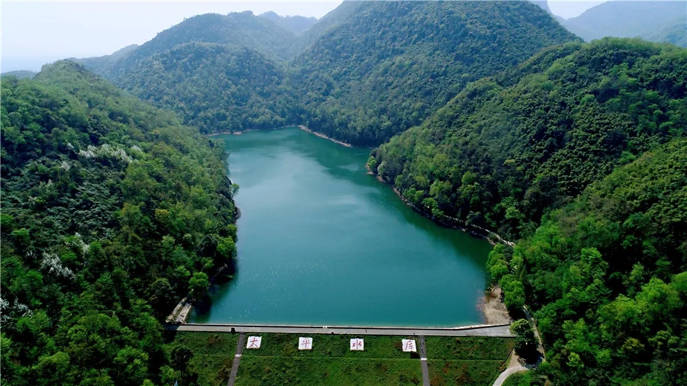 整个水库中的湖水干净透亮,湖水中还泛着蓝绿色,阳光洒在湖面,倒映着湖边的树木,整个水库都完全被四周的青山绿荫所环绕,如果站在高处俯视整个太平水库,这里还真颇有几分“小九寨”那股味道。