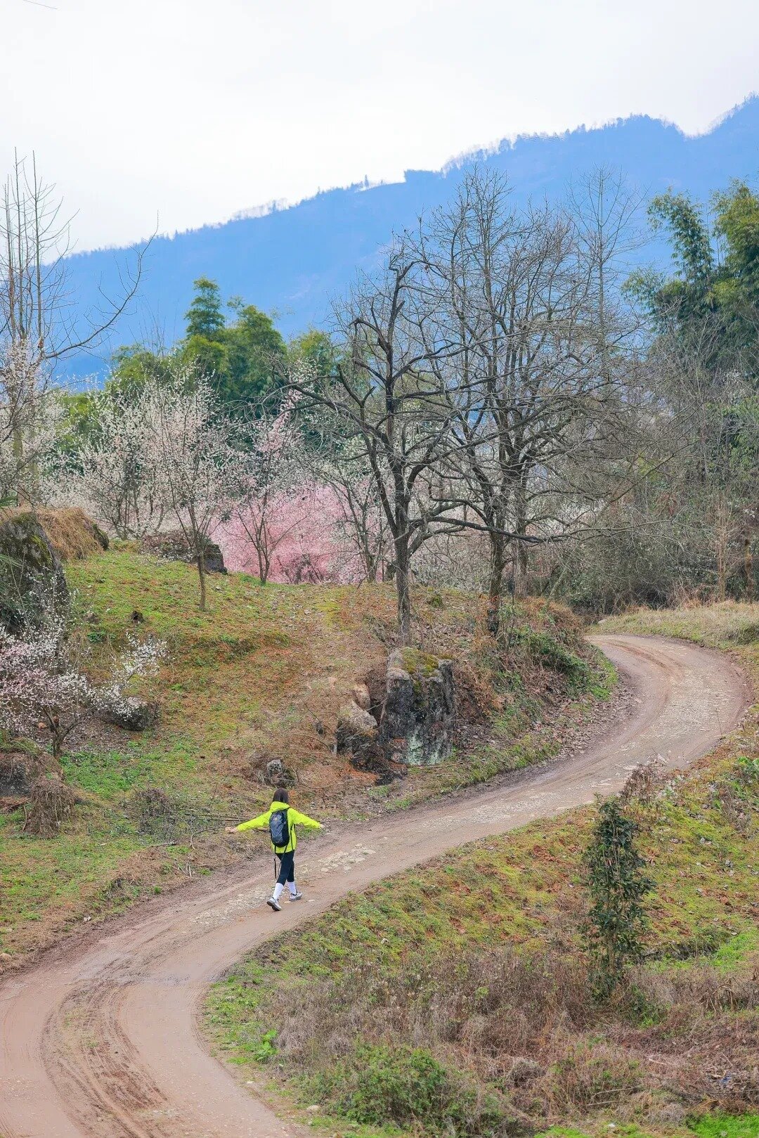 如果您在找成都周边可以看梅花,徒步打野,且人少景美的地方,那就来大邑吧!除了梅花,沿途还能看到零星的油菜花,金黄的花瓣为山野增添了一抹亮色。