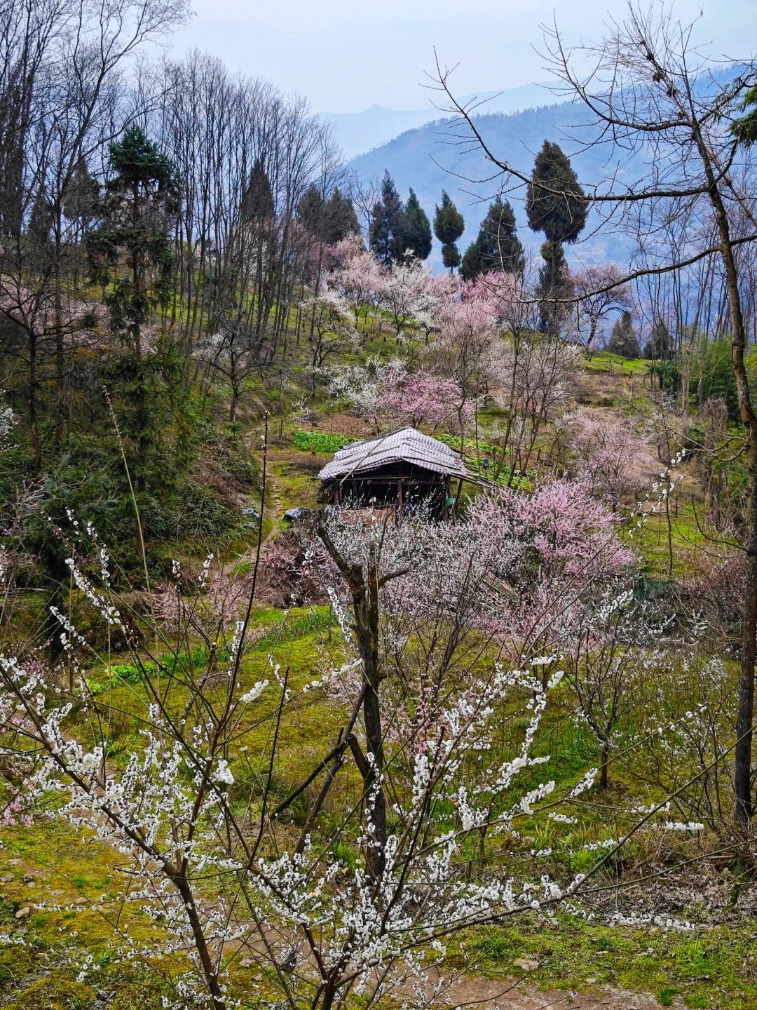 沿着蜿蜒的小路,沿途经过梅林、油菜花田、山间土路,还可以随意的挖挖野菜,运气好的话可以看到西岭雪山主峰。有条件的伙伴带上汉服、单反无人机哦!