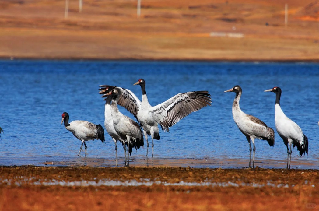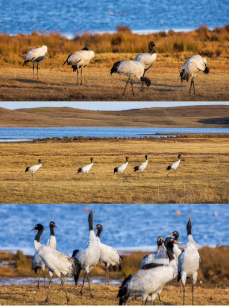 你能看到成群结队的黑颈鹤