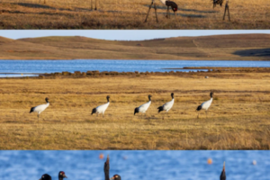 万亩草场上的黑颈鹤