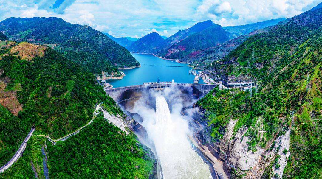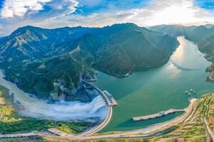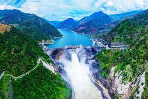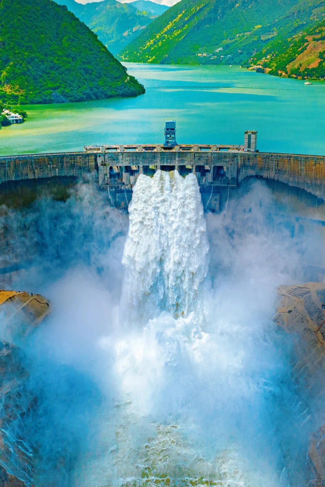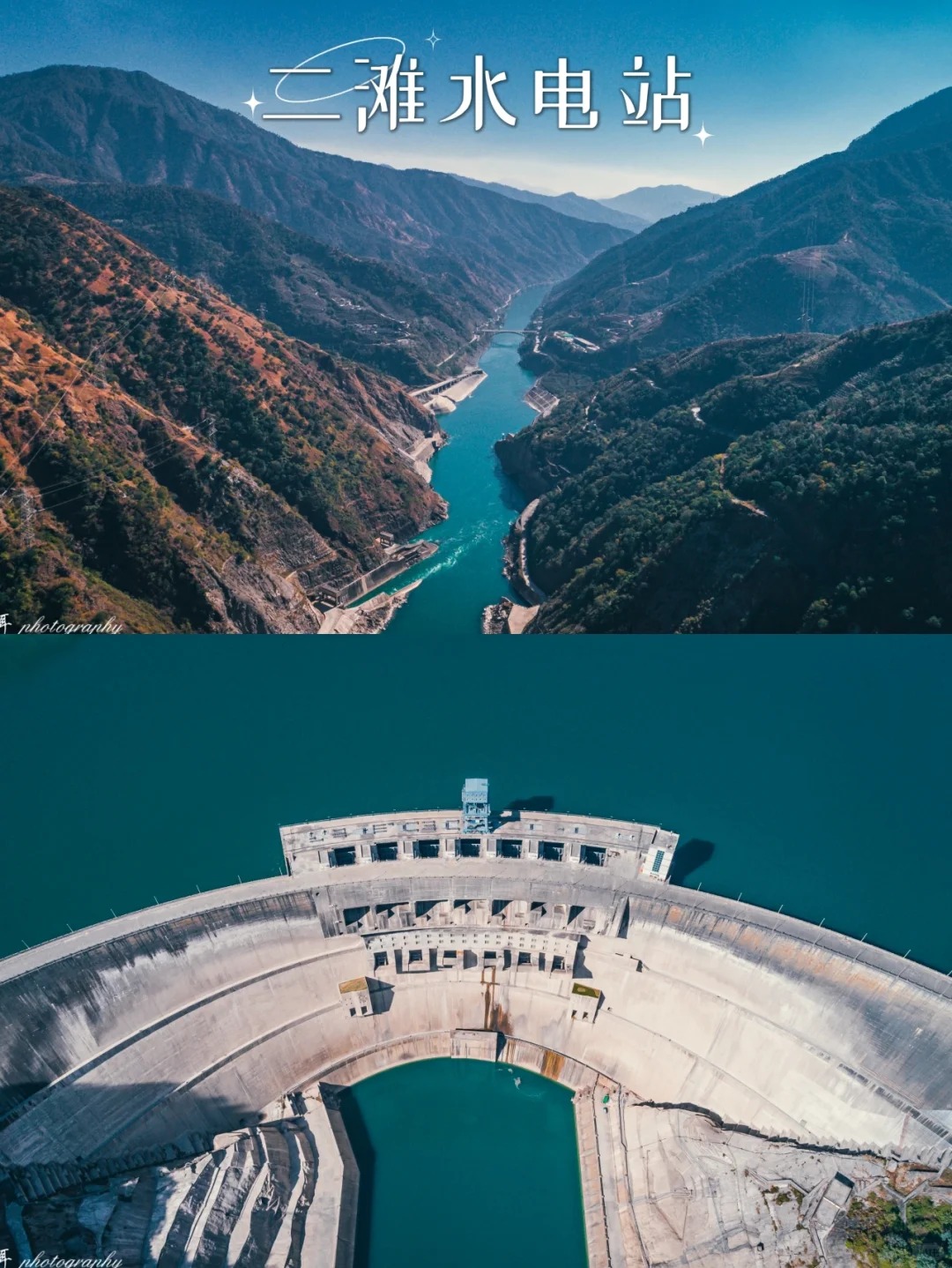 二滩水电站的坝址就修建在二滩,汹涌澎湃的雅砻江流到这里,就象打了一个寒颤,被高240米的大坝拦腰截住,然后从泄洪洞倾泻而下。
