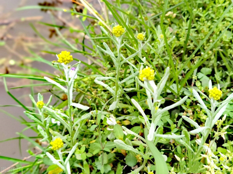 鼠曲草是一种开着黄色小花的植物,叶子上有很多白色的小绒毛。鼠曲草也叫清明菜,是一种用来作清明粑的食材之一。