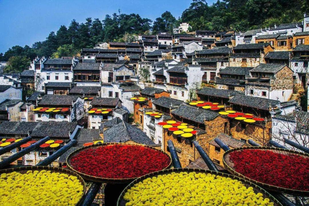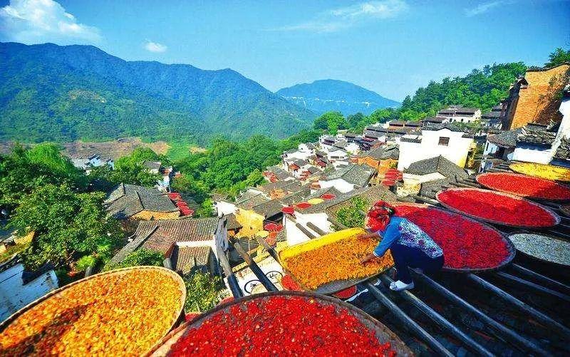 婺源,记录晒秋,红辣椒、稻谷、黄豆等拼图成一幅幅民俗风情杰作,一年四季绵延有序;