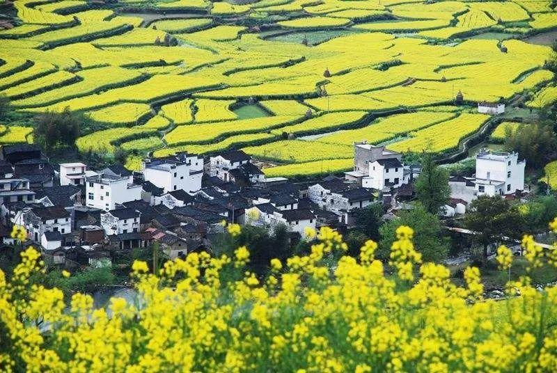 中国最美乡村之称的婺源在3月进入了最美的季节:油菜花、萝卜花、桃花、梨花大片开放,掩映在白墙黑瓦、碧水环绕的古徽居村落之中,如童年的诗歌。