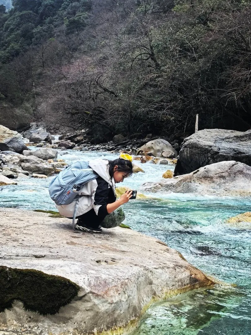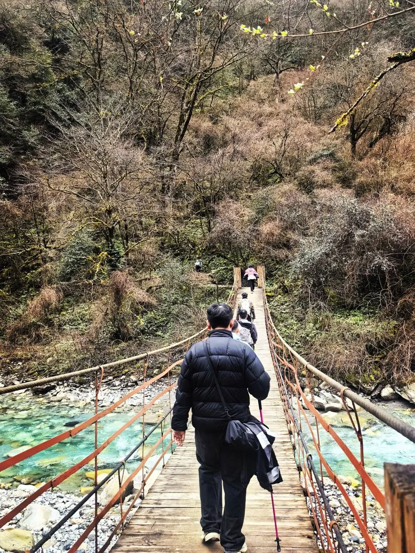 下车先来张大合照,领队组织简单活动身体,随后取票跟随领队入园,沿途河谷,溪流,原始森林,边走边玩,也能打卡拿奖牌。线路平缓,基本都能完成,实在走不动的,可以自理坐景区的观光小火车。