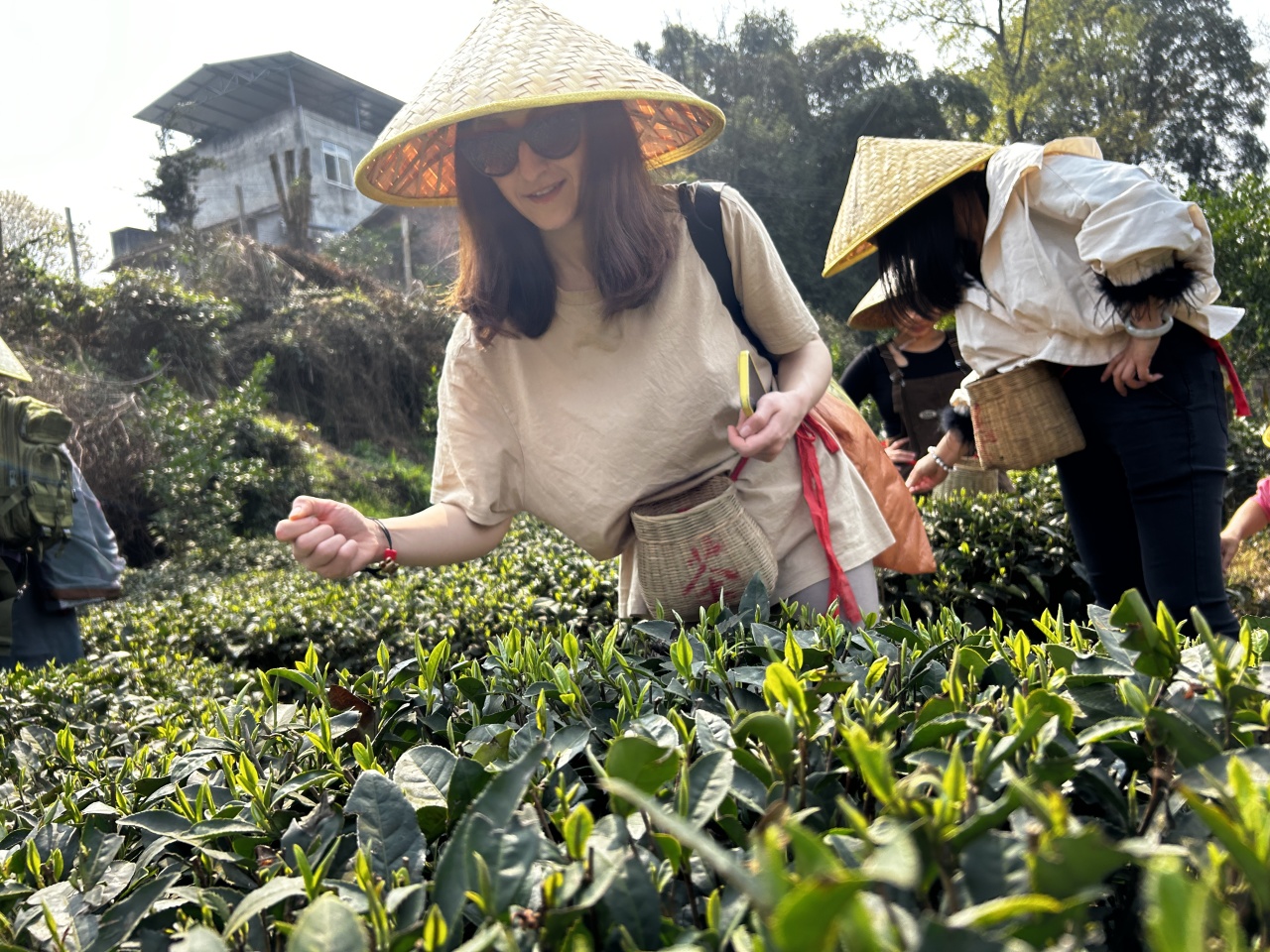背着茶篓置身于郁郁葱葱的自然中,清风携带着沁人心脾的茶香。亲手采茶、制茶、泡茶,品味其中的滋味,让踏春之旅变得灵动。蓝天、白云、清风、茶韵形成的意境让人心驰神往,老人在茶园中忙碌,与他们简单攀谈,一段难忘的岁月便在脑海中展开。