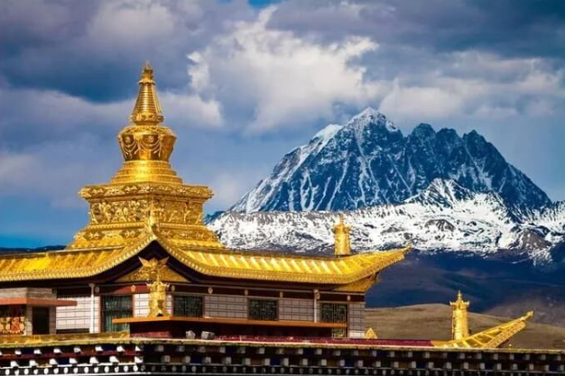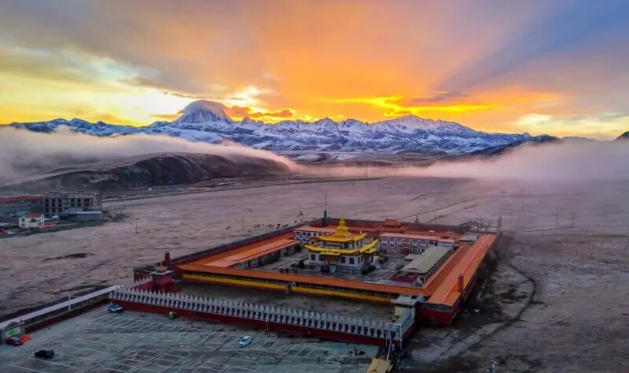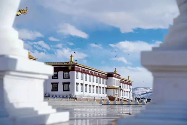 与藏式民居、远山雪景相融