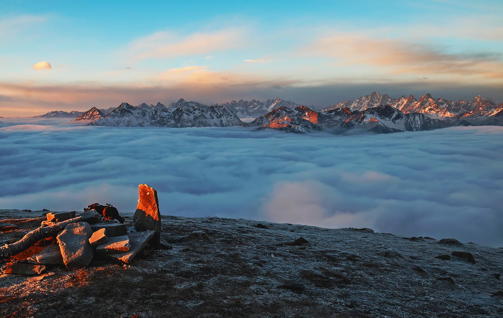 达瓦更扎在藏语中意为“美丽的神山”,景区既可环顾北面的四姑娘山、南面的帕格拉神山、西面的贡嘎群峰、东面的峨眉山等名山,又可观赏云瀑云海、日照金山、佛光、星空、草甸、湖泊、峡谷、群峰、雾凇、高山杜鹃、藏寨等各类景观,景区主要因云海、日出、佛光、雾凇、草甸、高山杜鹃等景观而闻名。
