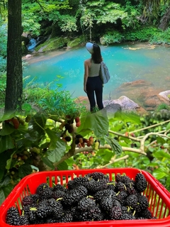 免费采摘当季新鲜桑葚(入园畅吃、管饱)、小众秘境龙窝子、瀑布溪流水杉林、徒步打野