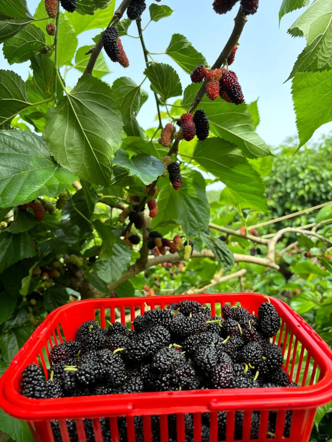位于崇州的有一片集观光游玩儿、科研养殖为一体的桑葚园,这里正在举行桑葚节,这里有6个品种:虫草桑、韩国白玉桑、红果一号桑、无籽大十桑、九渠龙桑、南溪黑珍珠(根据不同品种外面价格8-30/斤左右)