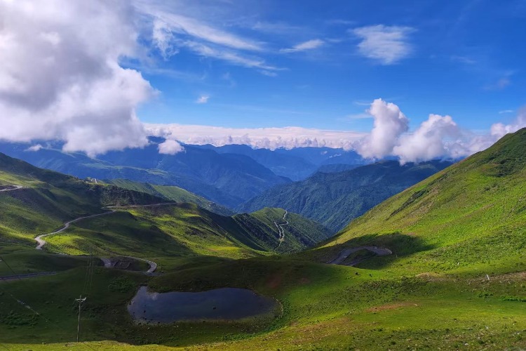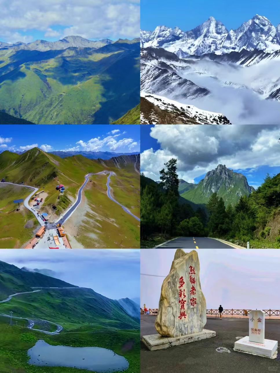 红军长征第一座大山、夹金山垭口、雪山云海、森林湖泊、高山草甸、最高海拔4114米