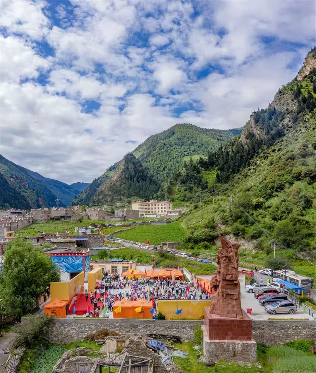 当年红军翻越夹金雪山后到达夹金村