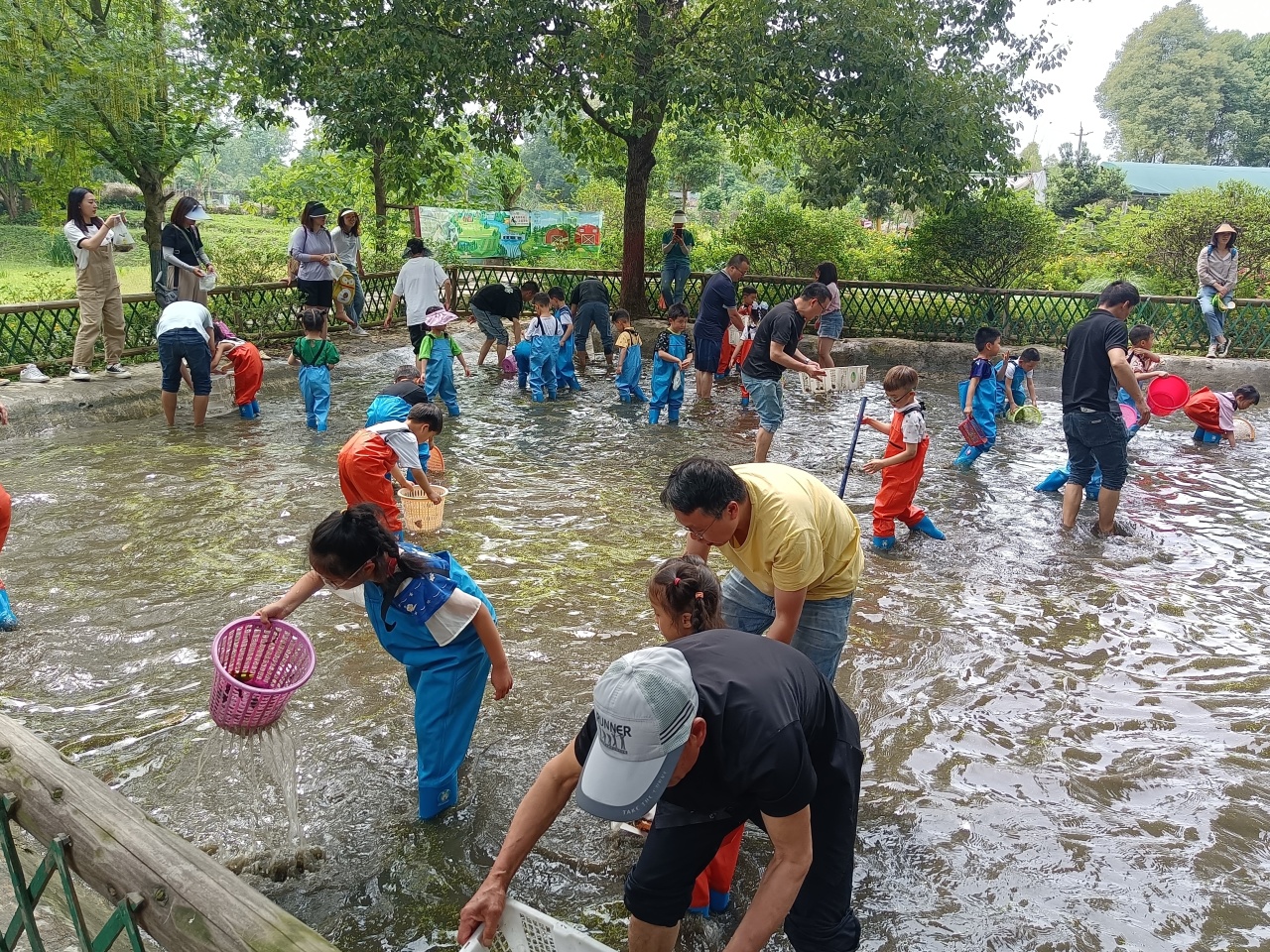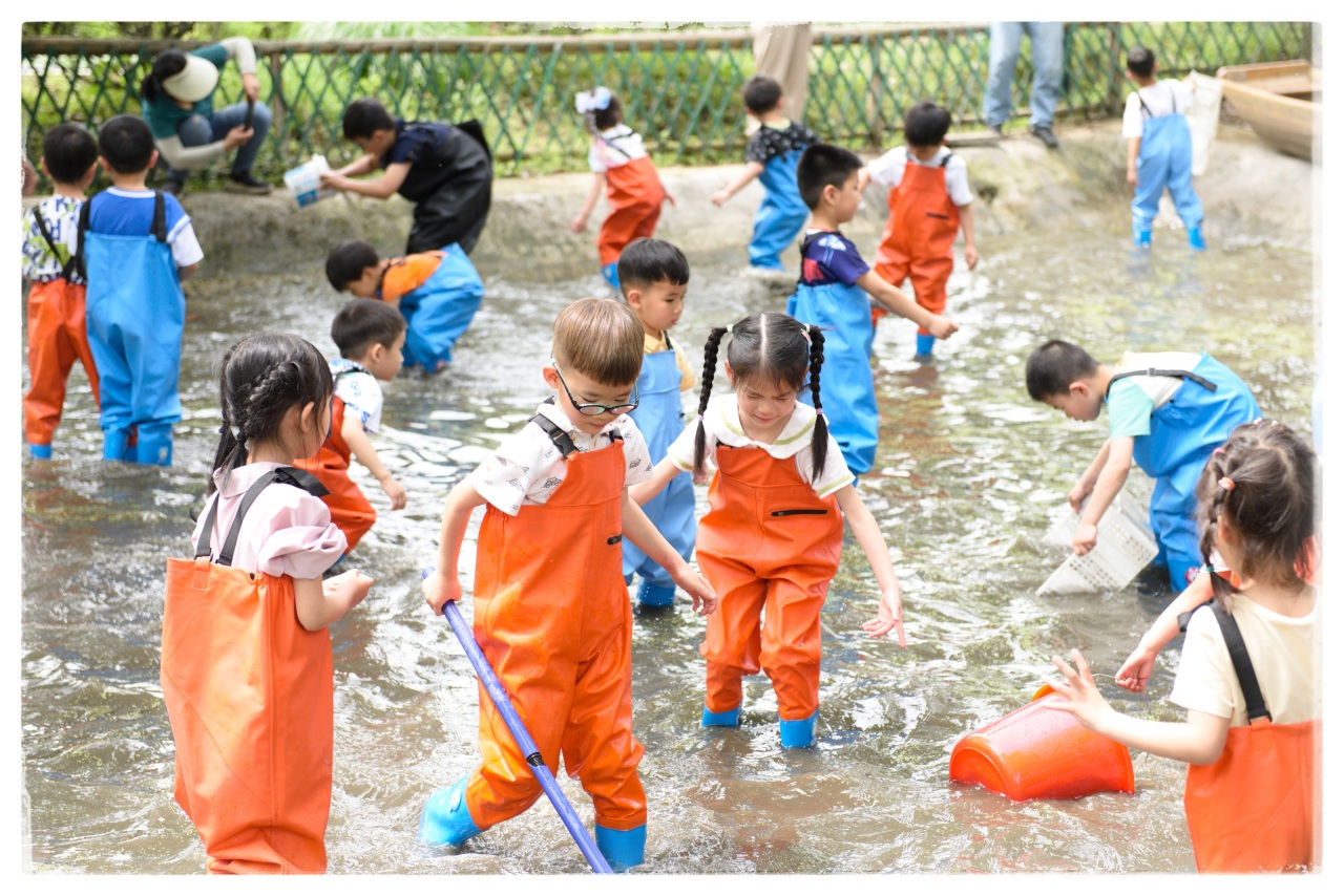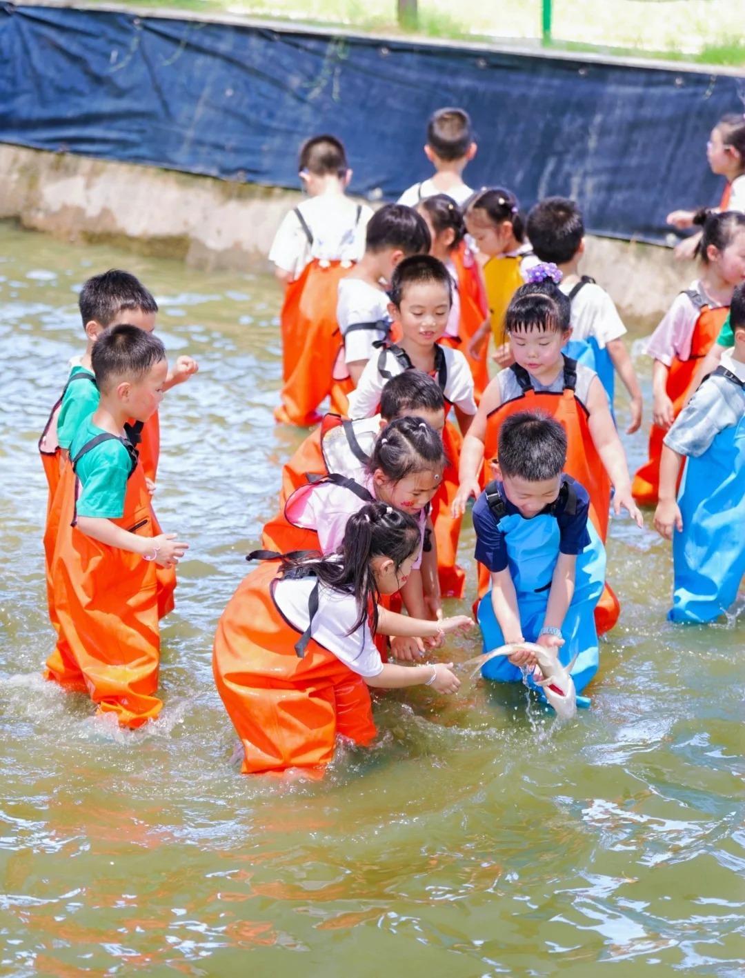 孩子们最爱的抓鱼环节来啦!让我们一起走进浅水区自由抓鱼,尽情地享受抓鱼的快乐吧!(每个小朋友都提供下水服)