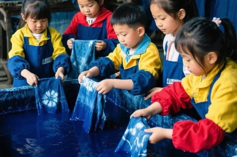 🐠 上午:热身游戏、扎染手绢、打糍粑