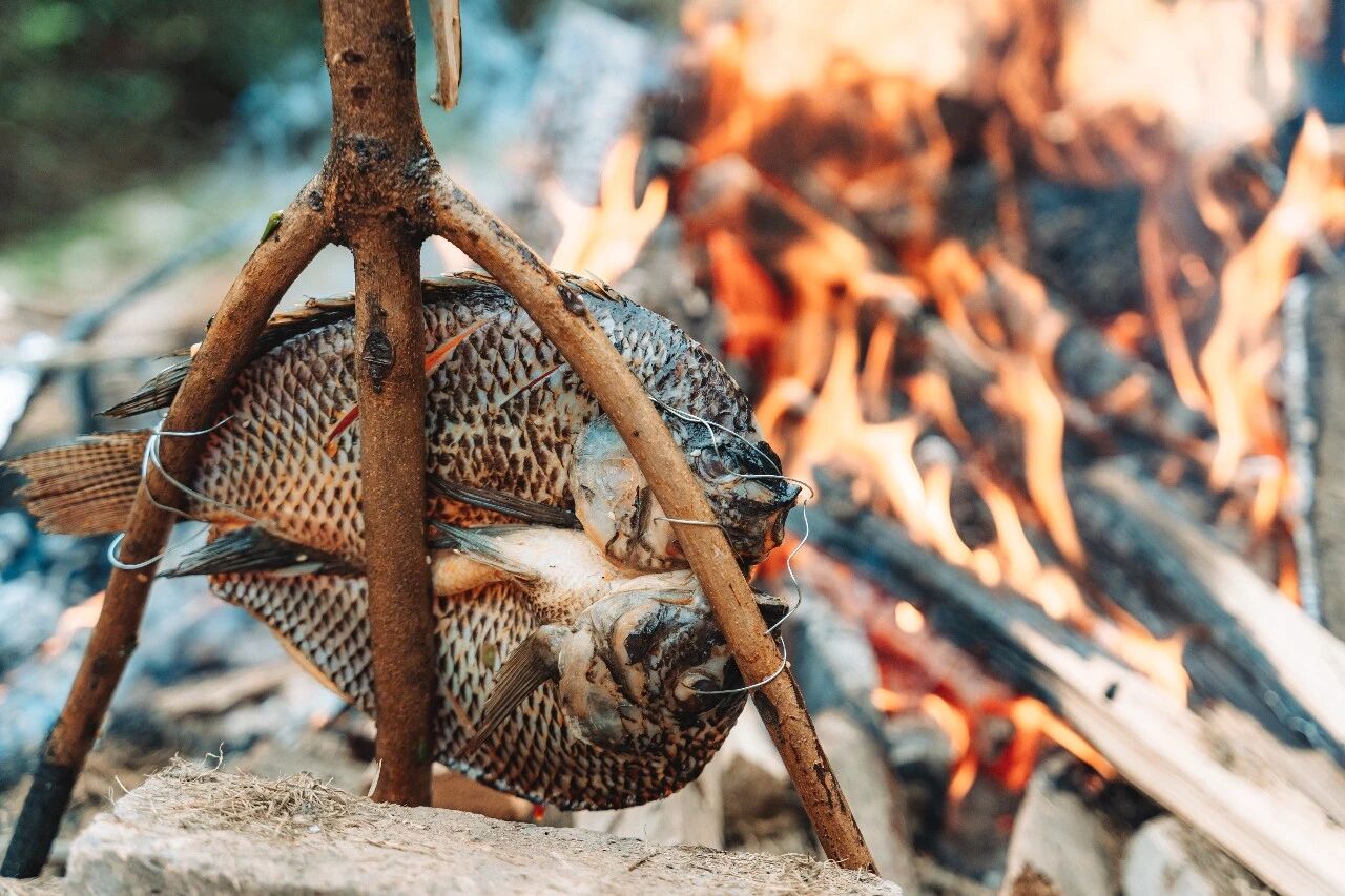 🐟炭火烤鱼:从生火到烤制,全程亲手操作,焦香四溢,收获满满成就感