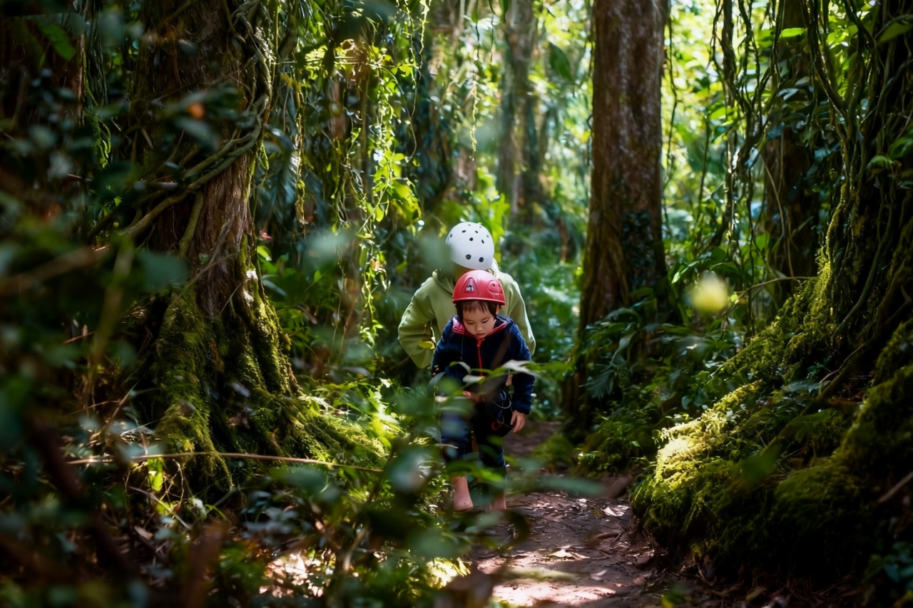 孩子们走进丛林,开启奇幻穿越之旅,在蜿蜒有趣的树洞里探索穿梭,在山野间拉绳索攀爬,仿佛闯入童话世界,满足孩子的好奇心与想象力,收获别样童趣。