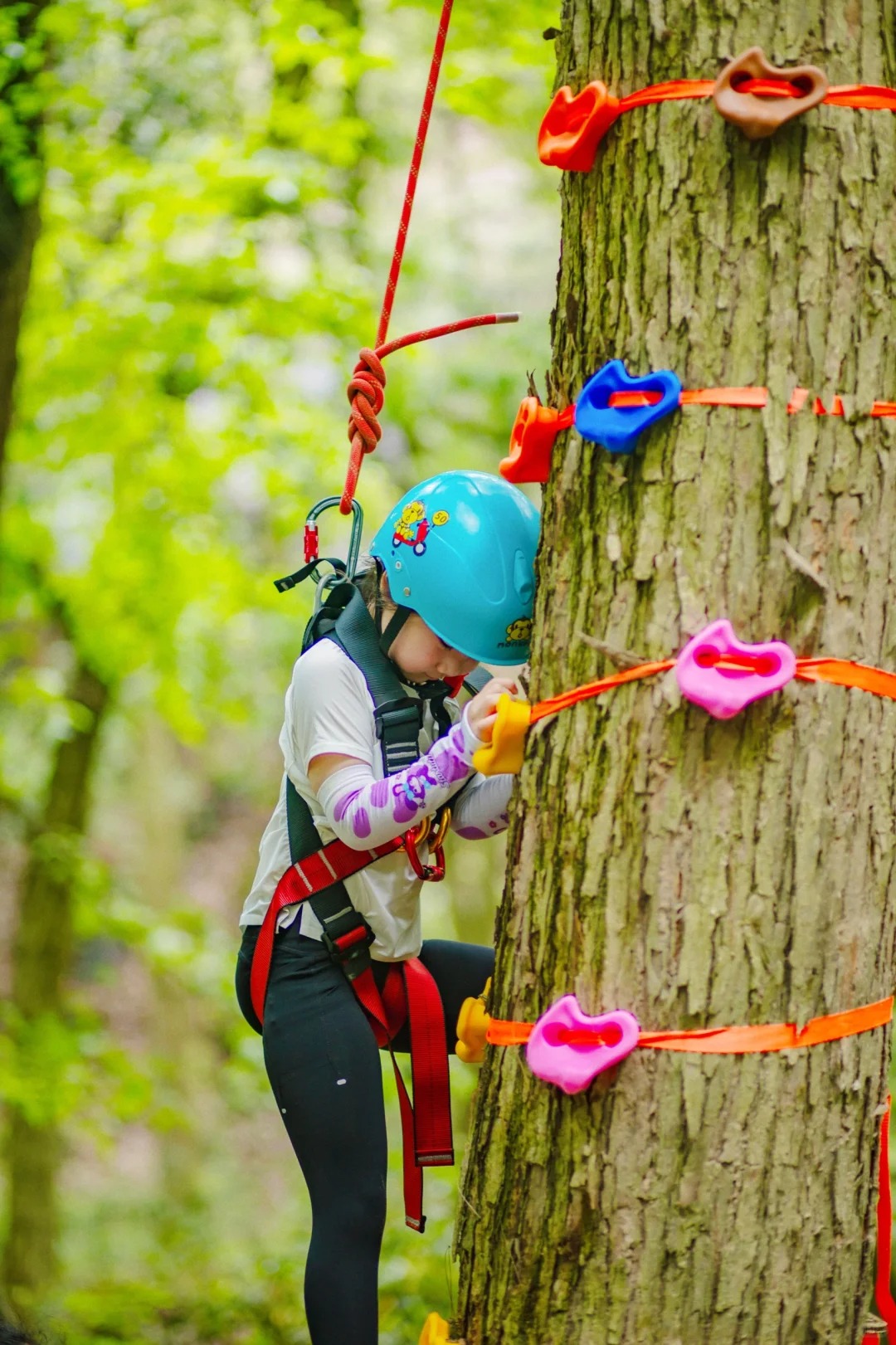 攀爬,是孩子们的天性!爬上一棵树对于孩子来说,就像打开了一个崭新的世界。小朋友们将在专业教练的带领下学习攀树运动的各类技巧,借助岩点和绳子,一步一步地往上攀向天空。