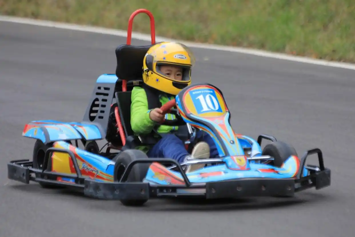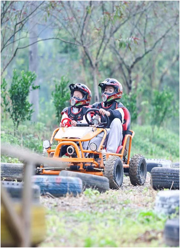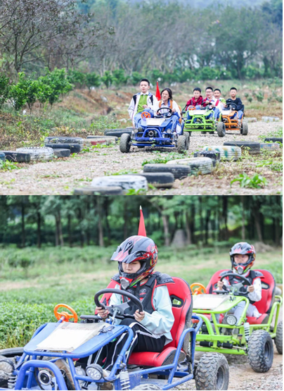 一辆辆酷炫的儿童越野车整齐排列在草坪上等待着小朋友一起来挑战啦。让我们一起坐上越野车,感受一番山地驾驶的速度与激情吧