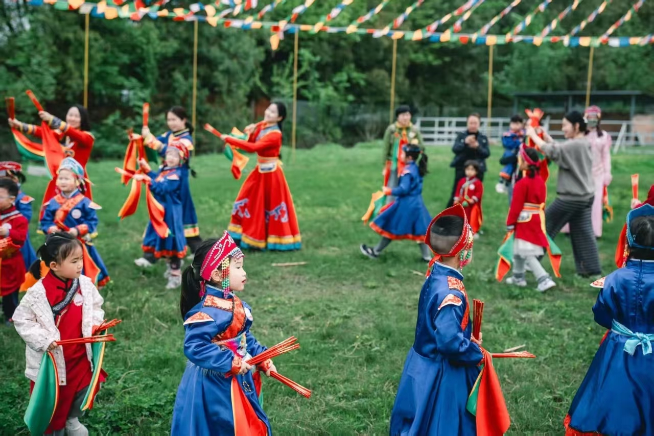 马头琴声悠扬响起,欢快的旋律回荡在现场。大家手拉手围成一圈,身着传统蒙古服饰的叔叔阿姨们来到小朋友们中间,带着大家一起趣跳蒙古舞。舒展的身姿、轻快的步伐,在欢声笑语中感受草原舞蹈的热情与豪迈,沉浸式体验蒙古族民俗魅力,留下温暖又欢乐的美好瞬间。