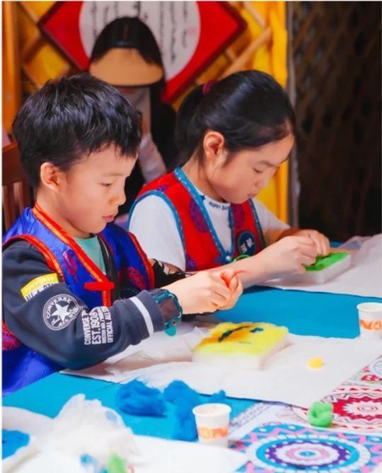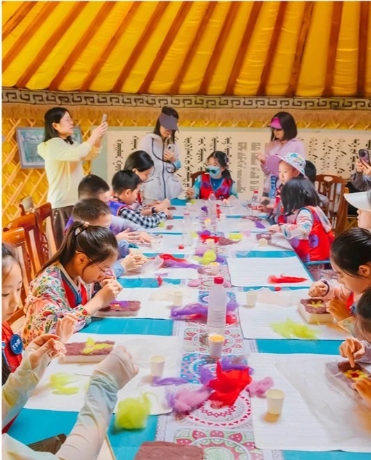 在羊毛毡手工体验中,家长与孩子一同将蓬松羊毛揉捻、塑形,感受游牧民族的生活智慧。柔软的羊毛在手中慢慢成型,沉浸式体验蒙古族传统技艺,既锻炼动手能力,又能留下充满民俗风情的暖心手作。